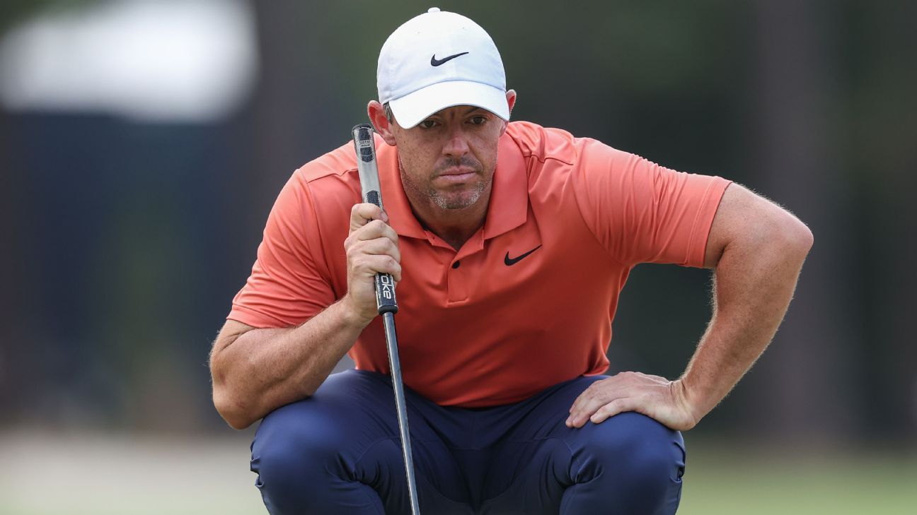 Zum zweiten Mal in Folge gab McIlroy dem Publikum in Pinehurst mit einem weiteren Pass vom Grün etwas zum Jubeln. Nachdem McIlroy seinen Annäherungsschlag auf dem 17. Par-3-Platz knapp vor der Markierung geschlagen hatte, ging sein Schlag am Loch vorbei und vom Grün weg ins kurze Gras. Ein frustrierter McIlroy flehte darum, damit aufzuhören – ohne Erfolg – und rettete dann den Ball mit seinem Keil. Kein Schläger nötig. McIlroy, der am Freitag am 10. Loch startete, beendete den Tag mit einem Vorsprung von 2 Under und einem Vorsprung von 3 Under für das Turnier. — Ogetti